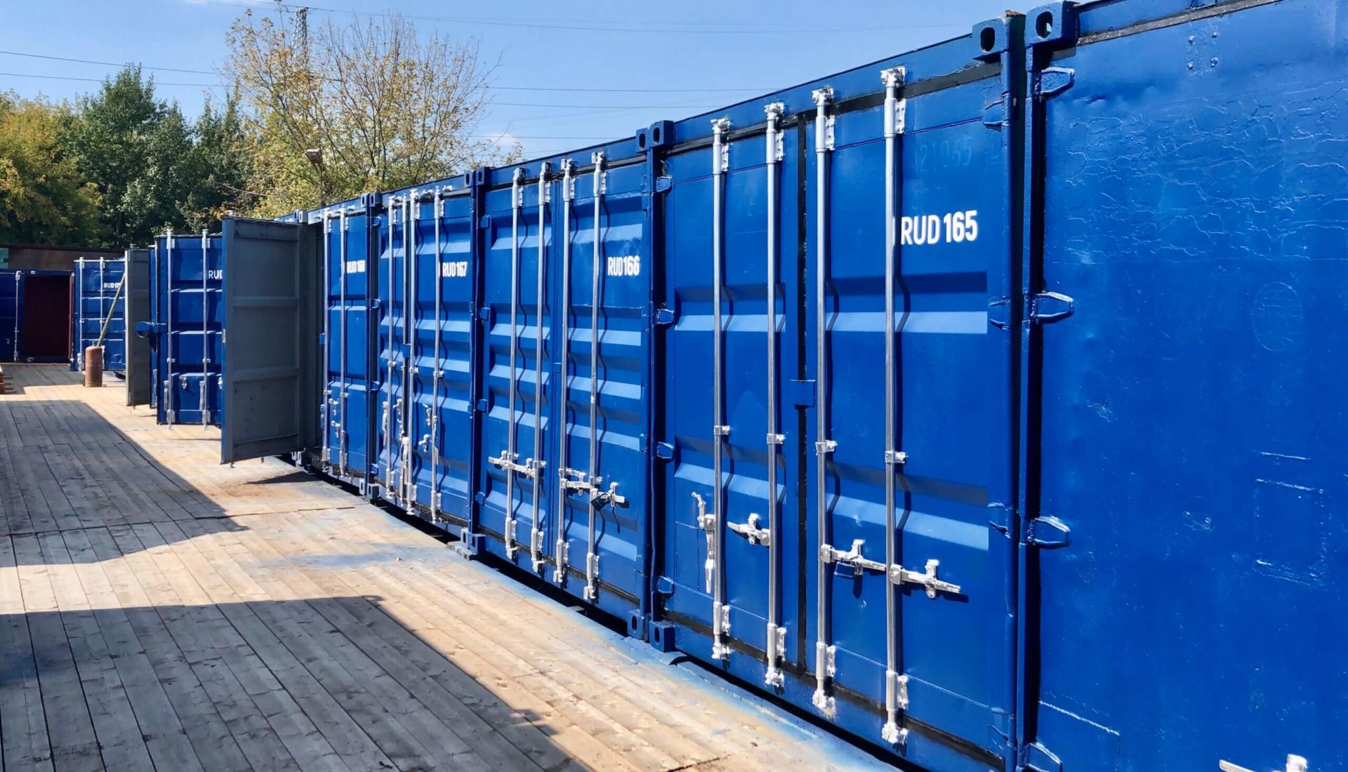 - Морские контейнеры 20 ft — компактный, прочный и недорогой вариант для хранения на площадке.