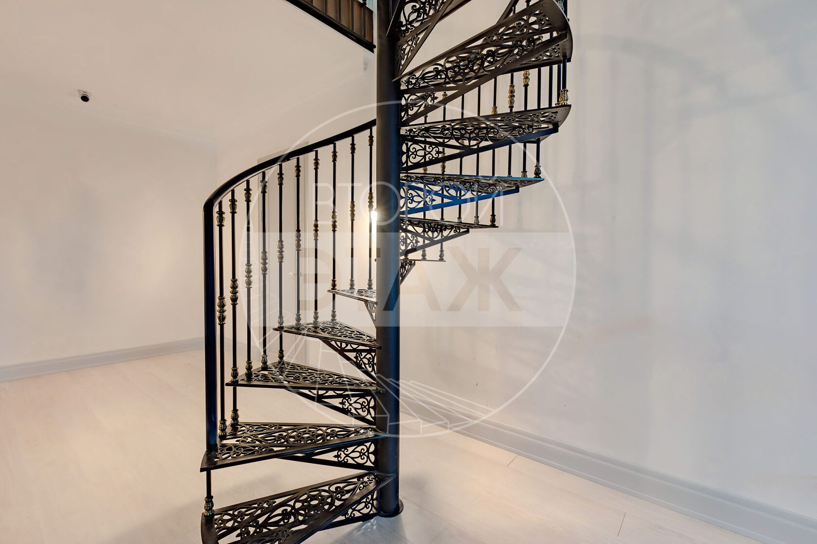 Занимает минимум места, поэтому хорошо подходит для небольшого дома или квартиры. Центральная стойка и спиральное расположение ступеней позволяют минимизировать площадь, необходимую для установки. Важно правильно рассчитать диаметр пролета и ширину ступеней, чтобы подниматься и спускаться было комфортно. Оптимальный угол подъема – до 45°.